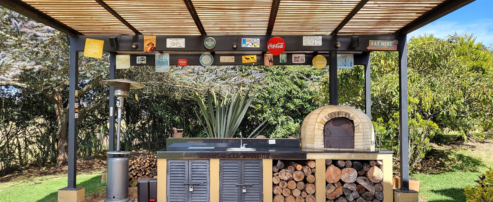 Puedes hacer uso de todos los espacios de la casa durante tu estadía. Destacamos la vista de las habitaciones, el comedor interior y exterior, sala con chimenea y su horno exterior.
